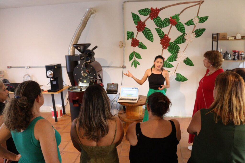 “Já temos um espaço de degustação, uma torrefação onde o cliente pode experimentar o grão da família e de outras regiões, torrado aqui no sítio. Por agendamento, o turista consegue participar de workshop com torra e levar para casa o café que ele viu ser processado. Para grupos maiores oferecemos modalidade de coffee breaks. Estou engajando os produtores locais para que ofereçam também bolos, doces e geleias. Estamos plantando uma semente para o futuro”, confidenciou Emilye.