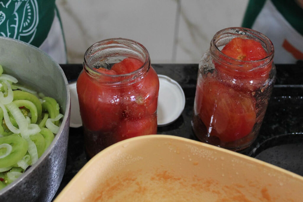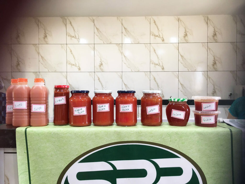 O tomate é processado é transformado em tomate seco, suco, extrato e extrato de tomate, tomate pelado, confit, geleia, compota, para consumo familiar, agregando valor ao que seria descartado, gerando economia e incentivo à produção local e a sustentabilidade, evitando o desperdício.
