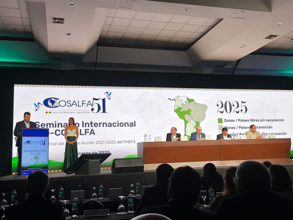 O Seminário Internacional Pré-COSALFA 2025, realizado no início desta semana na Bolívia, reuniu especialistas e autoridades da América do Sul para debater a transição do status sanitário “livre com vacinação” para “livre sem vacinação” na pecuária regional. O evento contou com representantes da Bolívia, Brasil, Equador, Paraguai e Chile, além de entidades como Panaftosa e Senasag.