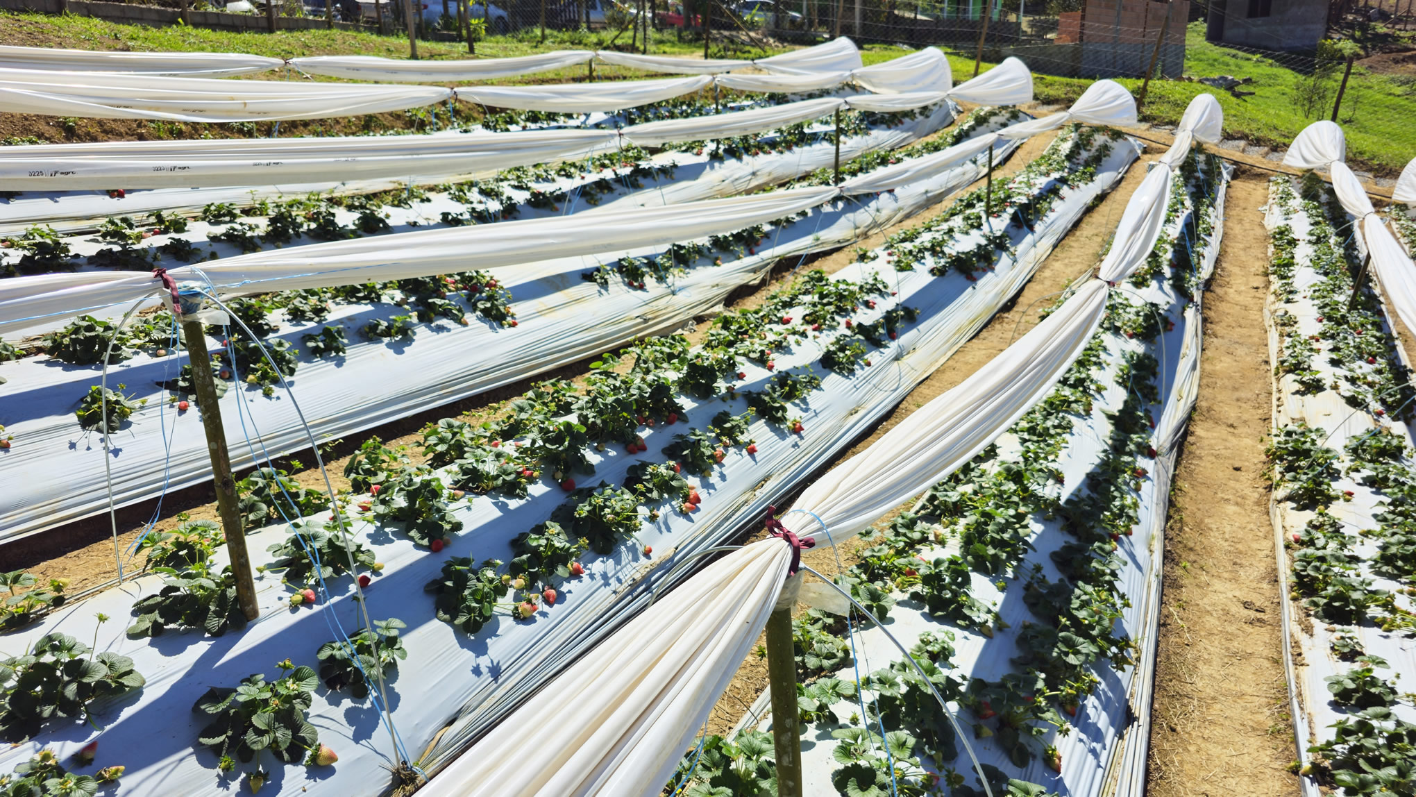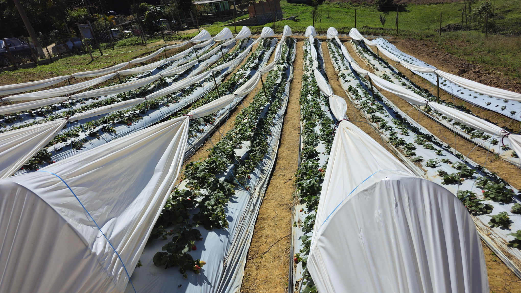 Trinta e quatro quilômetros adiante, na propriedade Chácara Pingo de Água, de José Vitorino de Camargo, em Juquitiba, a colheita foi realizada no último dia 10, com as mesmas técnicas e variedades de morangos.