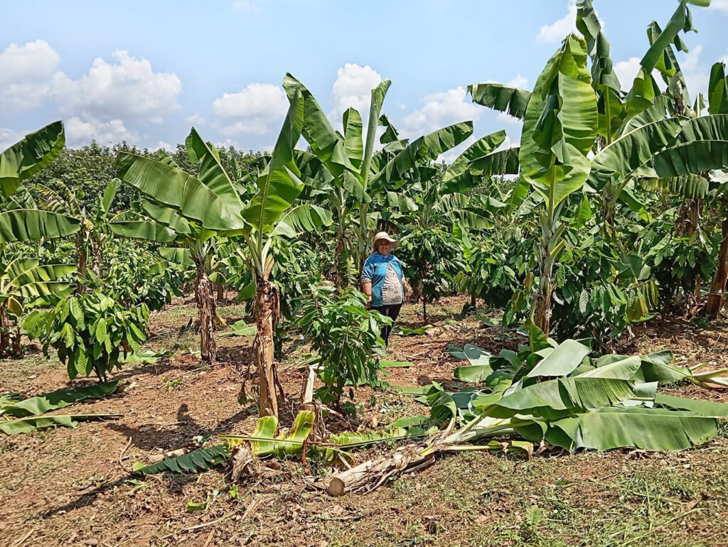 A produtora Mônica Munhoz, de Catanduva, que tem sua plantação em Palmares Paulista, está animada com a qualidade do cacau produzido em São Paulo. Para garantir o vigor do cacaueiro, que precisa de sombra, ela plantou bananeira e a Corymbia tolleriana, uma espécie de eucalipto, que ajuda a barrar o vento, no entorno. Com isso, após três anos, começa agora a colher as primeiras frutas, já que em 2021, por conta de geada, acabou perdendo os primeiros cachos que surgiram.