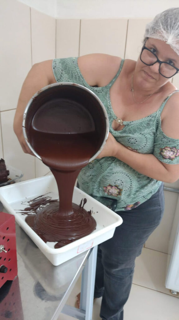 “Temos a expectativa de aumentar em 20% a produção de chocolate artesanal esse ano, com o diferencial de ser bean to bar (da amêndoa à barra), ou seja, sem adição de conservantes, glúten ou lactose. Usamos o cacau de José Bonifácio, porque entendemos que precisamos fortalecer a região”, disse Simone Caldeira, produtora e aluna do Programa Novo Olhar.