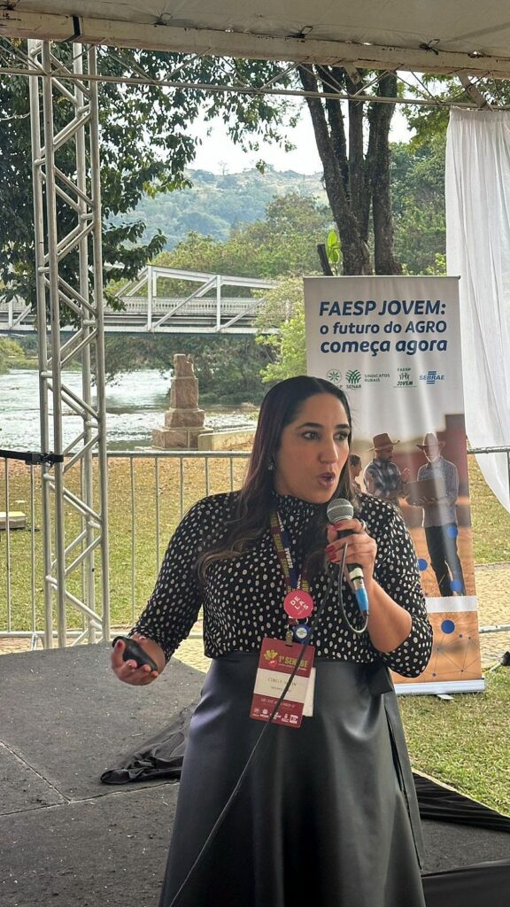 Representando o Sebrae, a analista de negócios Cibele Gulin conduziu o “Momento Sebrae”, com informações valiosas sobre empreendedorismo rural e oportunidades para jovens que desejam investir em seus próprios negócios no agronegócio.
