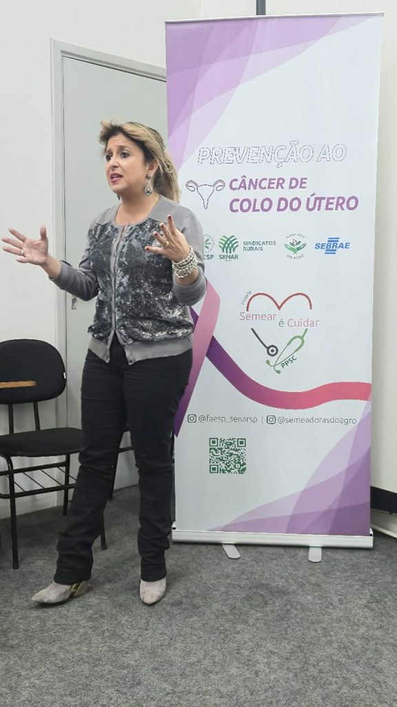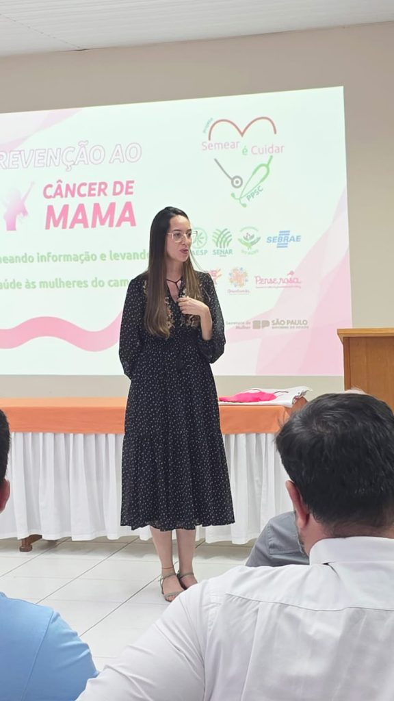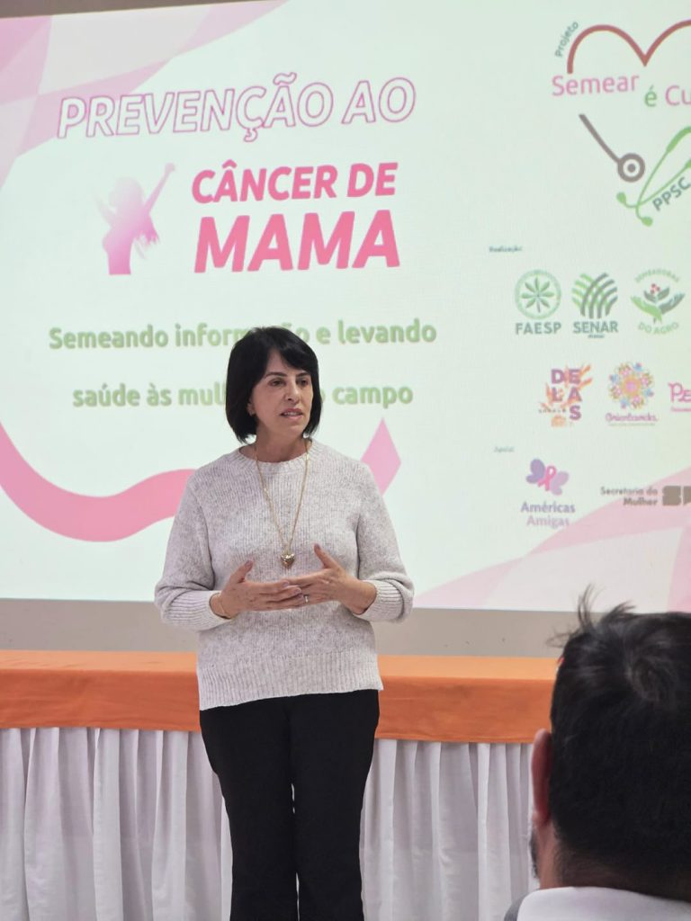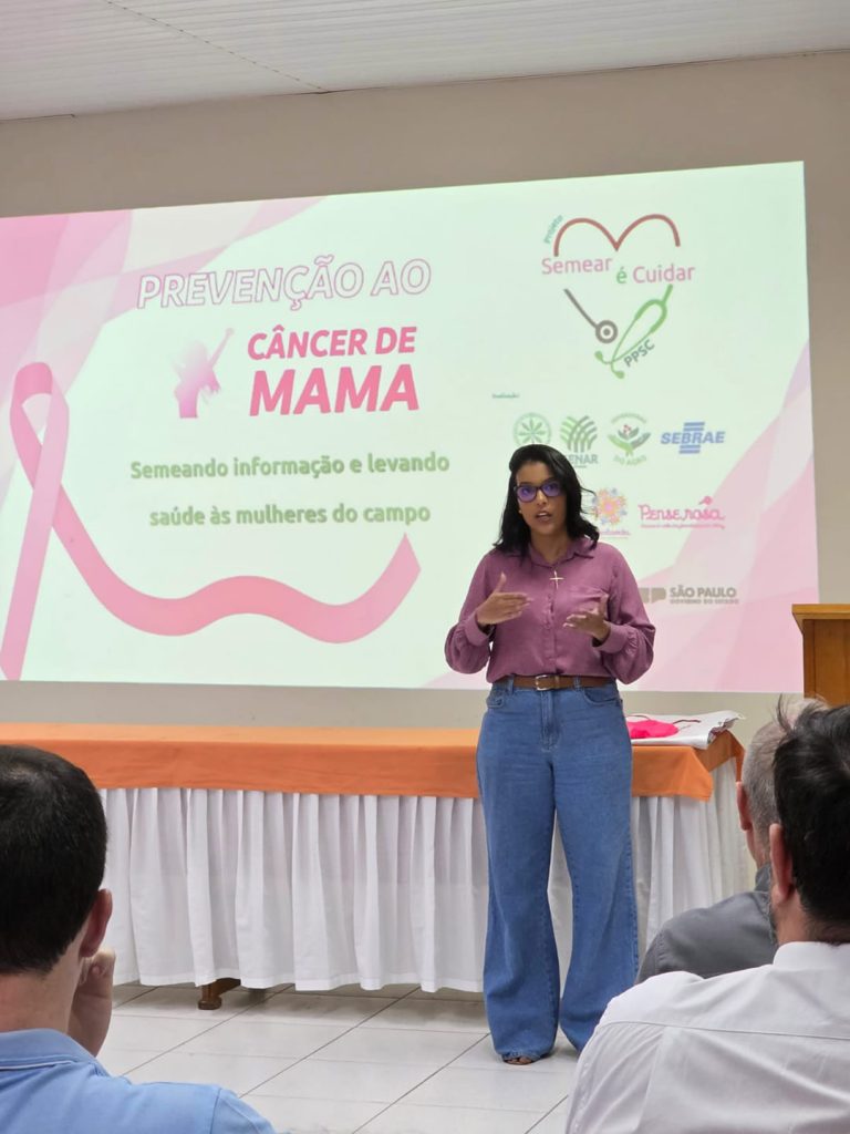 O Projeto “Semear é Cuidar”, parte do Programa Promovendo a Saúde no Campo do SENAR-SP, realizou uma série de eventos entre os dias 18 e 22 de agosto em seis cidades paulistas, com foco na prevenção do câncer de mama e do colo do útero. A iniciativa é promovida pelos Sindicatos Rurais, pela Comissão Semeadoras do Agro da Faesp, pelo Sebrae Delas e pelas ONGs Orientavida e Pense Rosa, com apoio das prefeituras, secretarias municipais de saúde, da Américas Amigas e da Secretaria da Mulher do Governo do Estado de São Paulo.