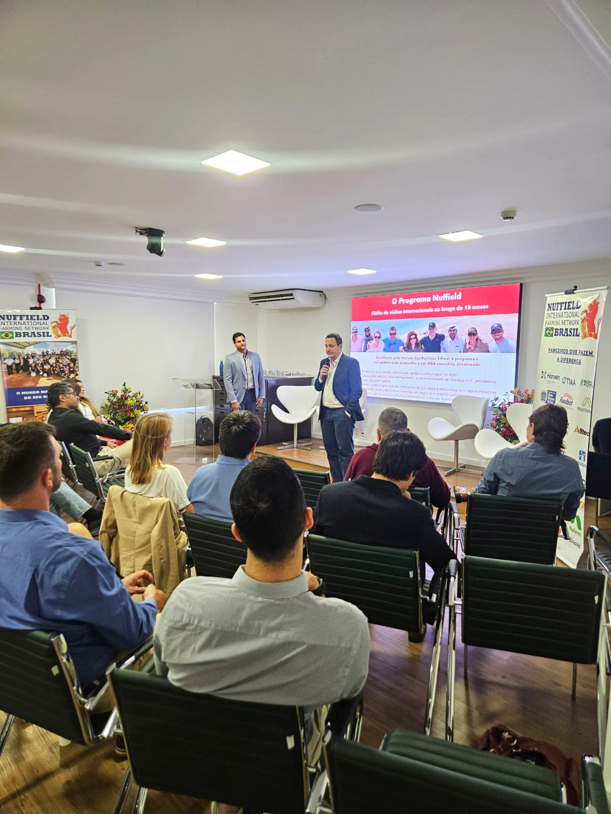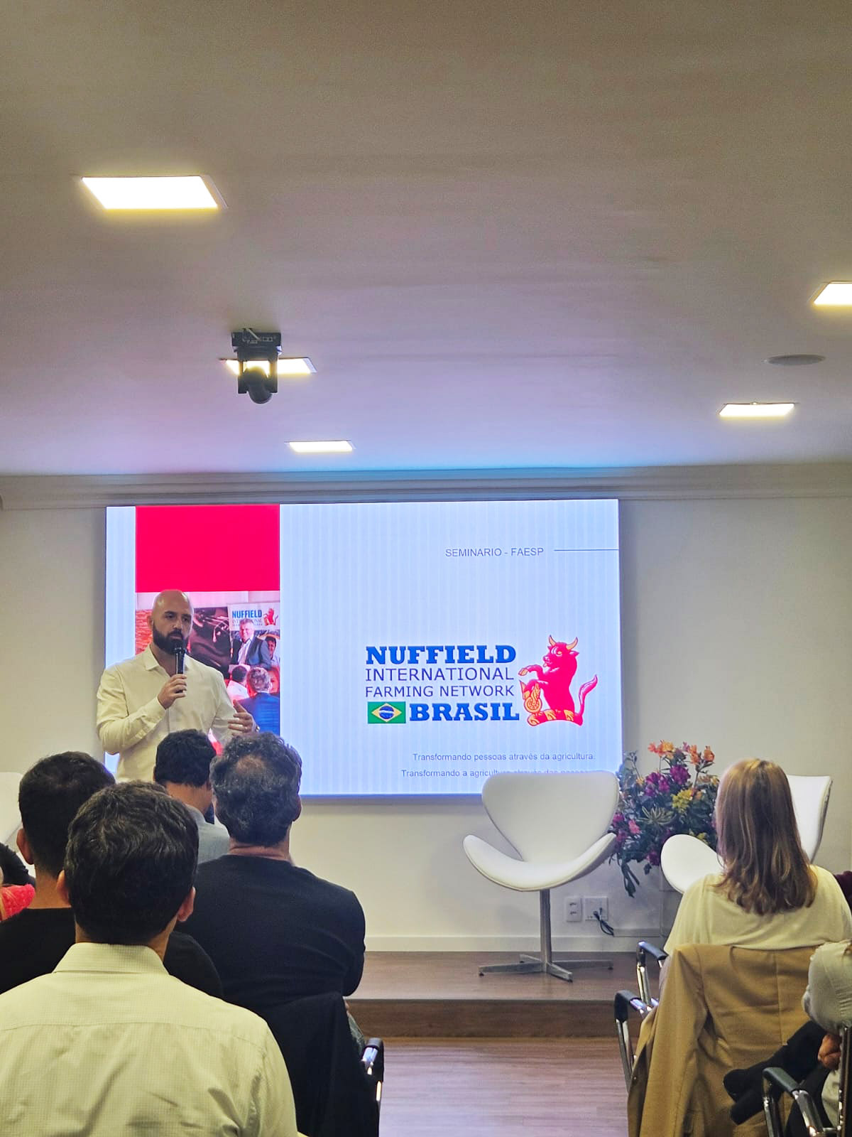 Artur Falcette, scholar 2018 e atualmente patrocinador da Nuffield, fez palestra para os convidados e participantes contando o impacto da rede em sua carreira e como emprega essa experiência sendo secretário de Estado Adjunto de Meio Ambiente, Desenvolvimento, Ciência, Tecnologia e Inovação, do governo do Mato Grosso do Sul.