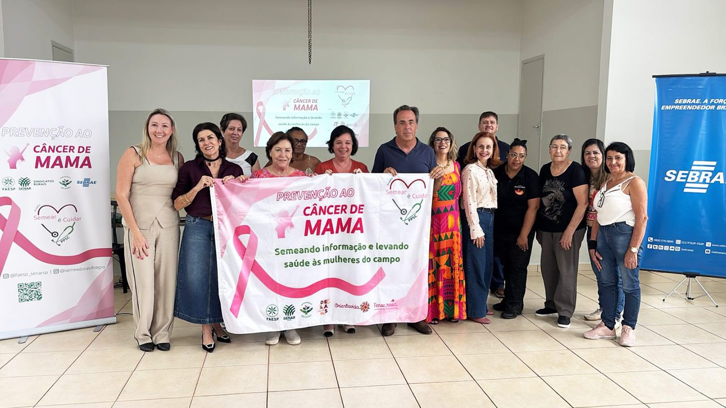 A Comissão Semeadoras do Agro, da Federação da Agricultura e Pecuária do Estado de São Paulo (Faesp), realizou, em parceria com o Senar-SP, sindicatos rurais, a ONG Orientavida e o Governo do Estado de São Paulo, os eventos de lançamento do projeto “Semear é Cuidar”, uma extensão do Programa Promovendo Saúde no Campo (PPSC/Senar-SP). A iniciativa tem como foco a prevenção do câncer de mama, oferecendo exames gratuitos, acompanhamento contínuo e orientação segura às mulheres do campo.